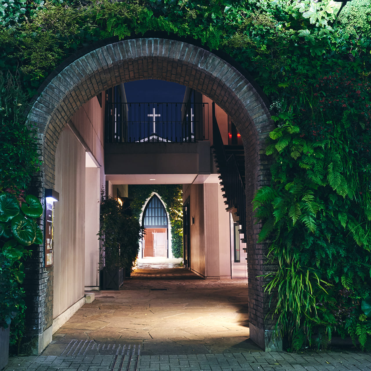 緑に包まれたファサードが別世界への入口。